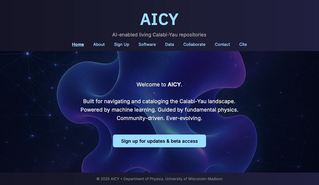 We welcome researchers interested in Calabi-Yau manifolds to contribute as developers. Please sign up for updates and beta access.
